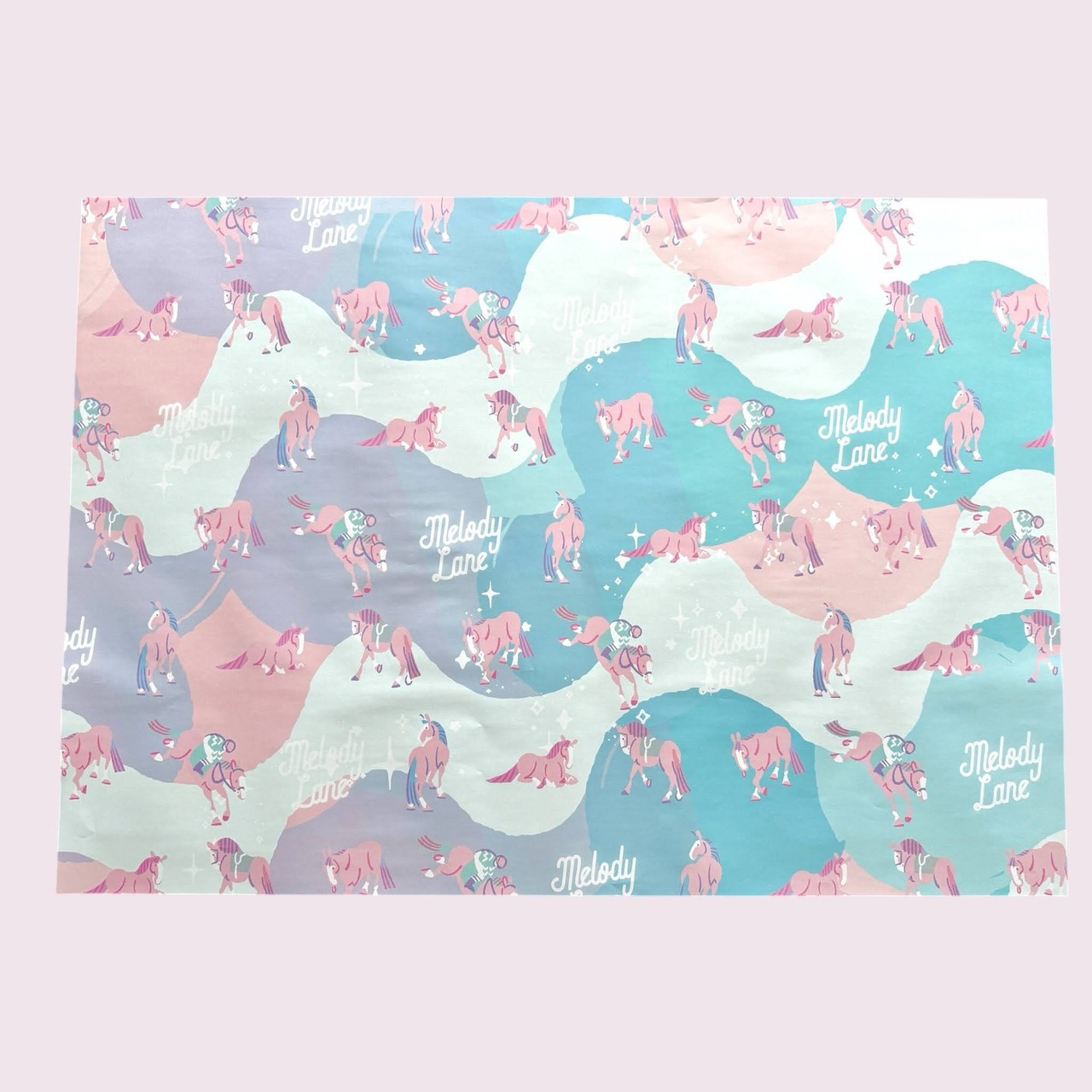先日、メロディーレーンの魅力をたっぷり詰め込んだ限定セット“メロメロセット”の梱包用に制作した包装紙を販売いたします。