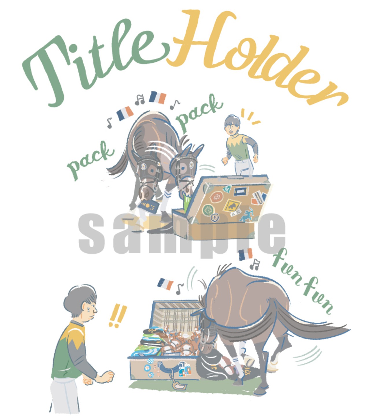 イラストはSNSで好評だった「凱旋門に向けて荷づくりをするタイトルホルダー」をプリントしました。